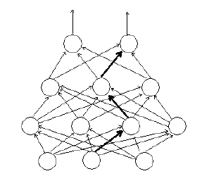 Generalizing the ideas of the delta rule, consider a hierarchical network with an input layer, an output layer and a number of hidden layers. We consider only the case where there is one hidden layer. The network is presented with input signals which produce output signals that act as input to the middle layer. Output signals from the middle layer in turn act as input to the output layer to produce the final output vector. This vector is compared to the desired output vector. Since both the output and the desired output vectors are known, we can calculate differences between both outputs and get an error of neural network. The error is backpropagated from the output layer through the middle layer to the unit which are responsible for generating that output. The delta rule can be used to adjust all the weights. More details are presented in (Fausett 1994).